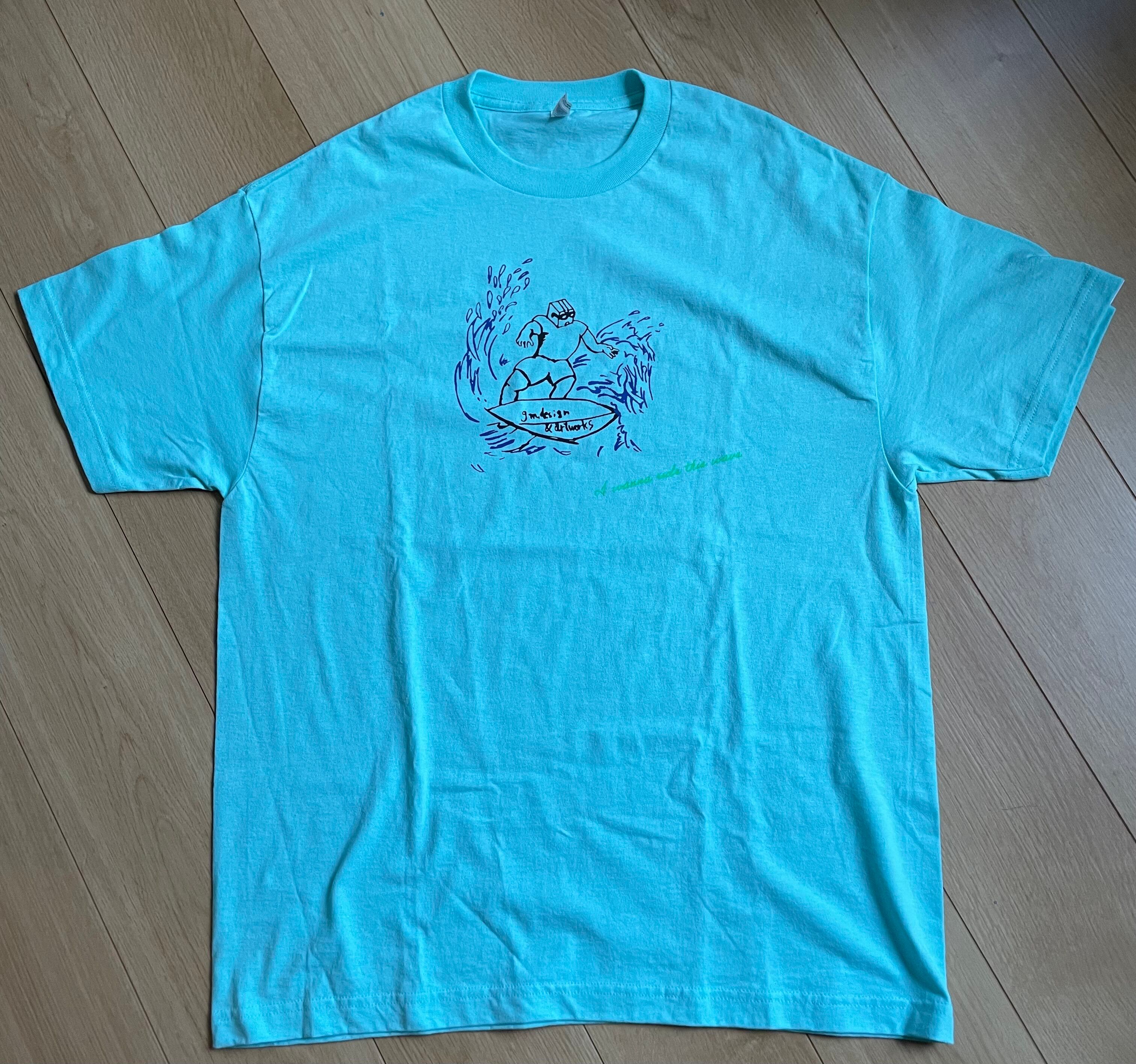 病気の後遺症で諦めざるを得なくなったサーフィンを、私の分身でもあるダンボールマンにだけでもやってもらおうということで、イラストにした原画をもとにデザイン・プリントしました。